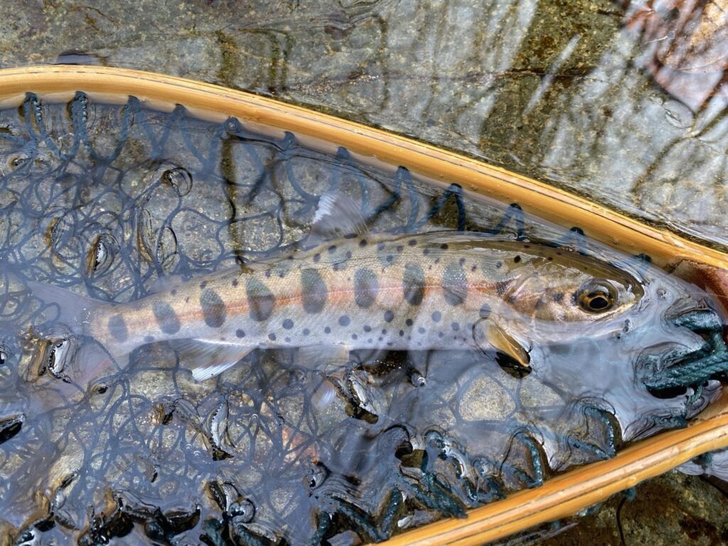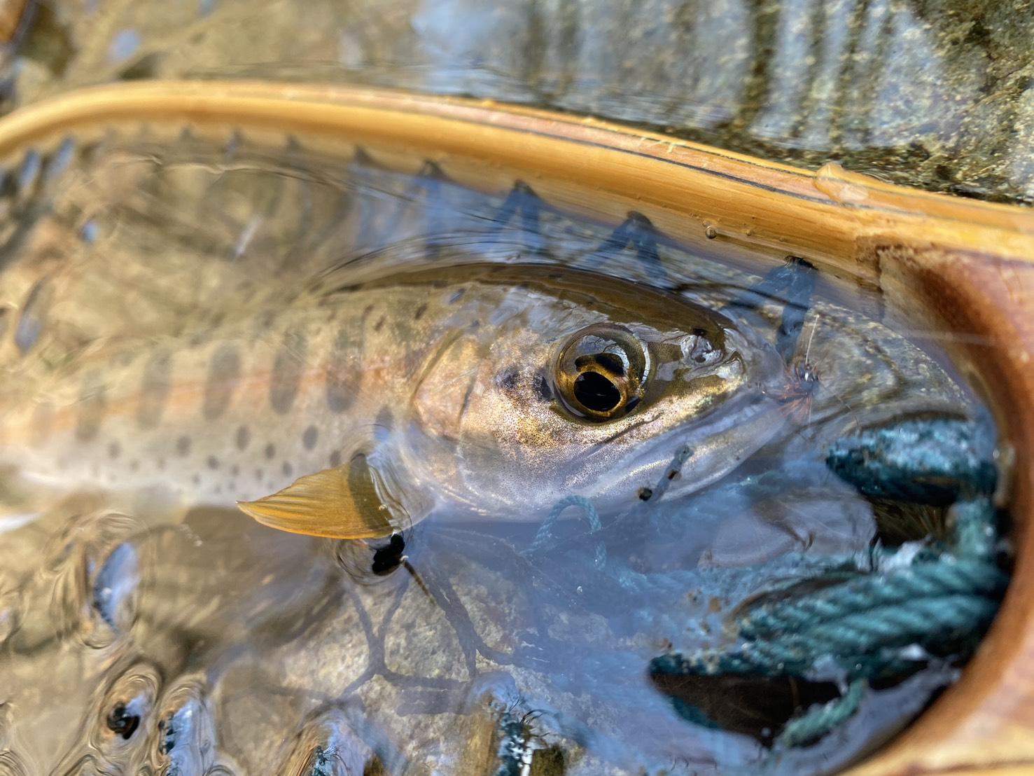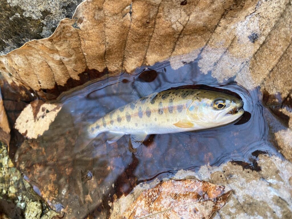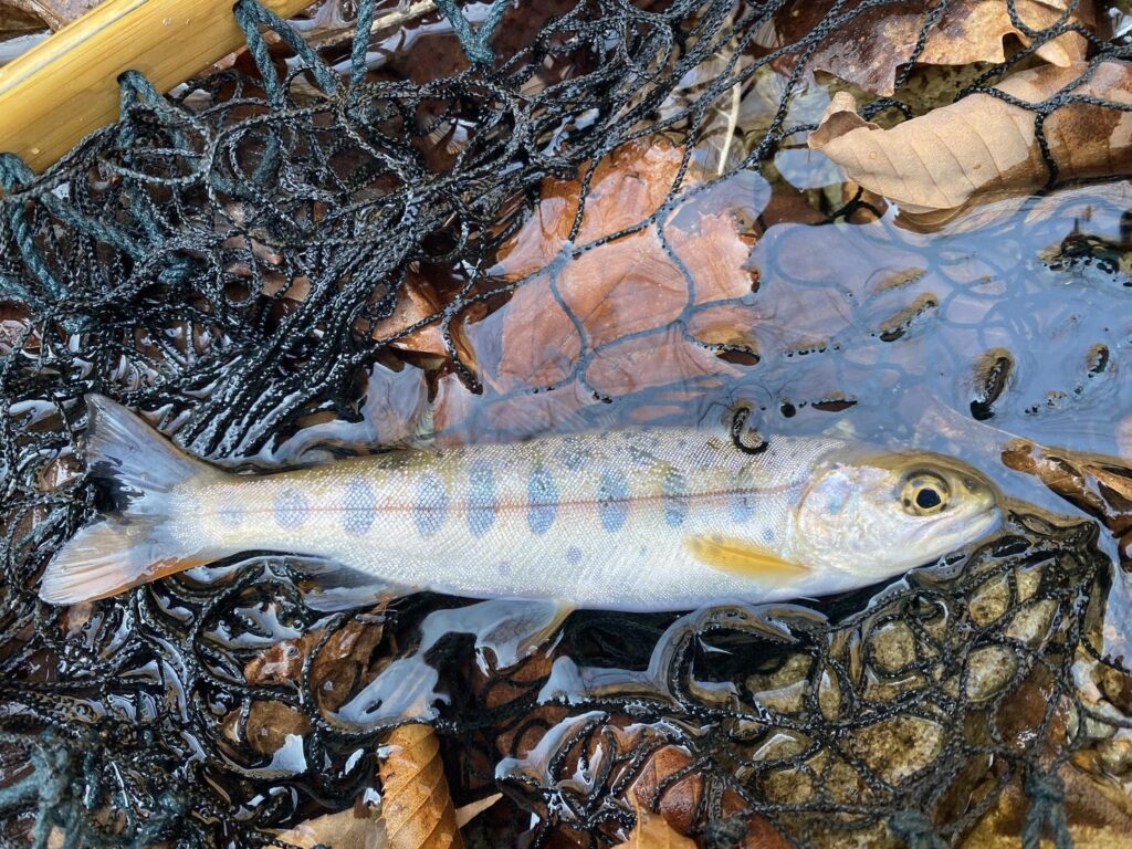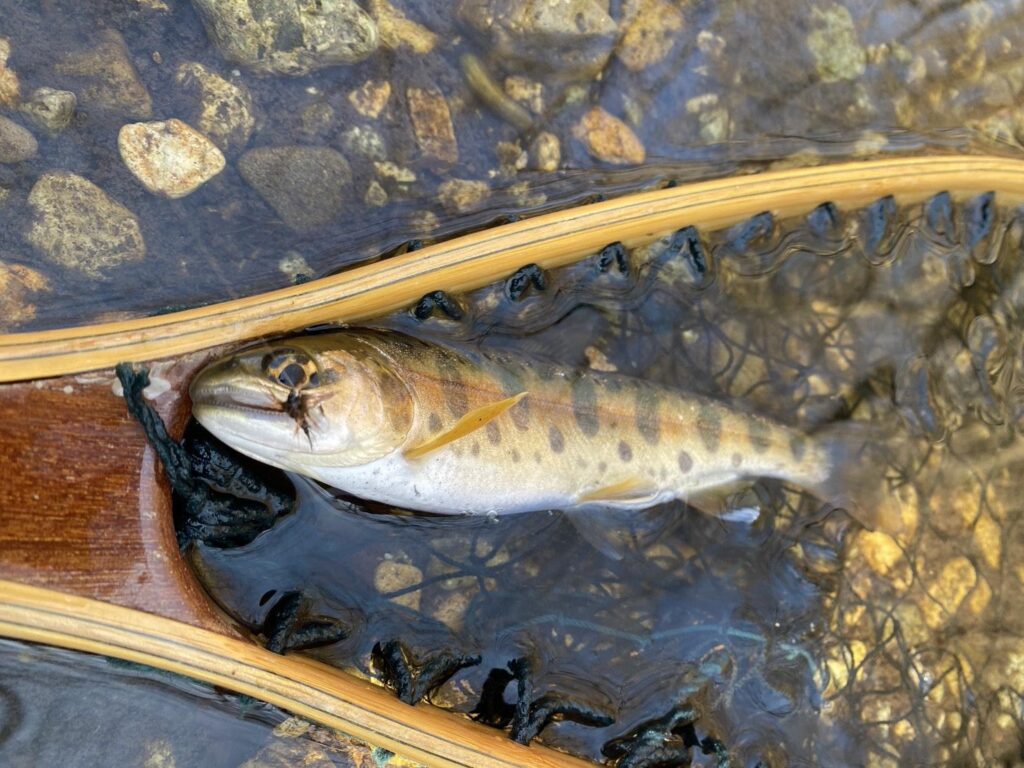 On the long-awaited opening day, I immediately tried tenkara fishing in a nearby stream and caught several small cherry salmon about 15cm long.